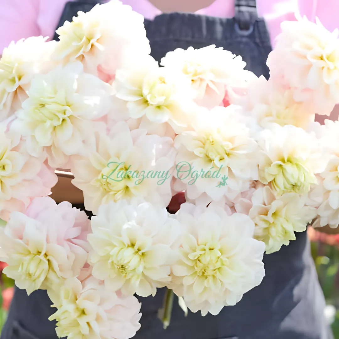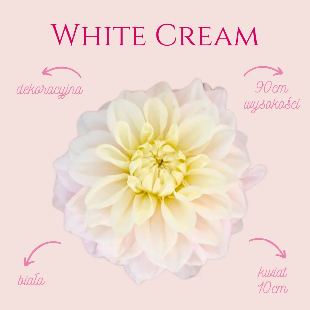 Dalia White Cream to odmiana dekoracyjna o eleganckich, miękko uformowanych kwiatach w subtelnym, kremowobiałym odcieniu. Płatki są delikatne, lekko zaokrąglone i układają się gęsto, tworząc pełną rozetę. Kolor pozostaje jasny i czysty, z delikatnym, kremowym podtonem, który nadaje kwiatom ciepły, naturalny wygląd. Roślina kwitnie obficie przez całe lato, dobrze prezentuje się zarówno na rabatach, jak i w bukietach, dodając kompozycjom lekkości i klasycznego uroku.