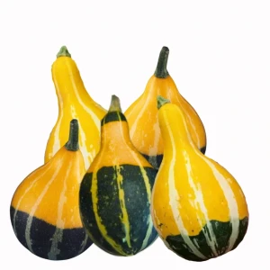 Dynia Pear Bicolour to dynia ozdobna, która kształtem przypomina gruszkę. Jest to roślina jednoroczna, w połowie żółta a w połowie zielona. Idealnie nadaje się na obsadzenie murków, altan i ścian, gdyż jest rośliną pnącą. Bardzo długo zachowują swój wygląd.