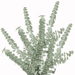 Eukaliptus - Silver Dollar jest byliną, obecnie jedną z najchętniej używanych we florystyce, cieszącą się ogromną popularnością. Jego srebrzysto niebiesko-zielony kolor jest takim unikatowym połączeniem, że idealnie komponuje się jako uzupełnienie bukietów. Charakteryzuje się dużym wzrostem, gałęzie są mniej gęste, jednak liście większe i zaokrąglone.