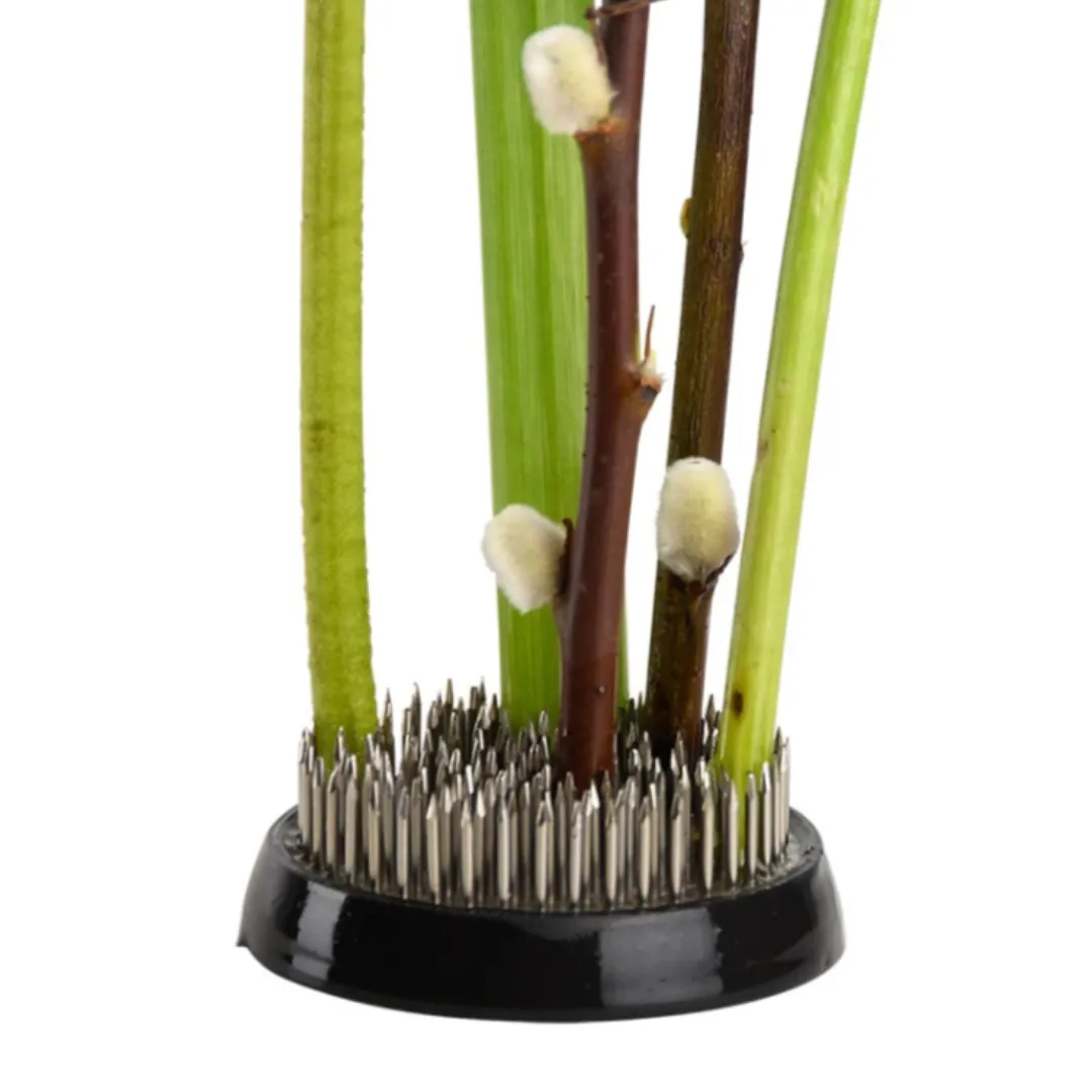 Tradycyjny Kenzan to niezastąpione narzędzie dla każdego miłośnika układania kwiatów. Dzięki 91 stalowym igłom pewnie utrzymuje kwiaty i gałązki w wybranej pozycji, a gumowa obręcz stabilizuje kompozycję i chroni wazon lub misę przed uszkodzeniem. Idealny do tworzenia pięknych, precyzyjnych aranżacji kwiatowych.