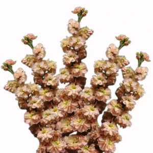 Lewkonia - Katz Apricot to cudowny, delikatny jednoroczny kwiat w jasnych, beżowych odmianach. Z każdej pojedynczej rośliny można uzyskać tylko jeden duży, pełny kwiat. Lewkonia wydziela piękny i intensywny zapach, utrzymujący się przez długi czas po umieszczeniu go w wazonie. Co istotne, kwiaty są jadalne. Jest to odmiana half hardy annuals.