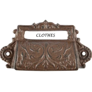 Żeliwny uchwyt do mebli z miejscem na etykietę